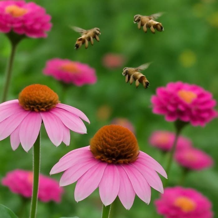 In summer, zinnias, lavender, mint, and coneflowers keep them busy. And in fall, asters and goldenrod become their final buffet before winter arrives.