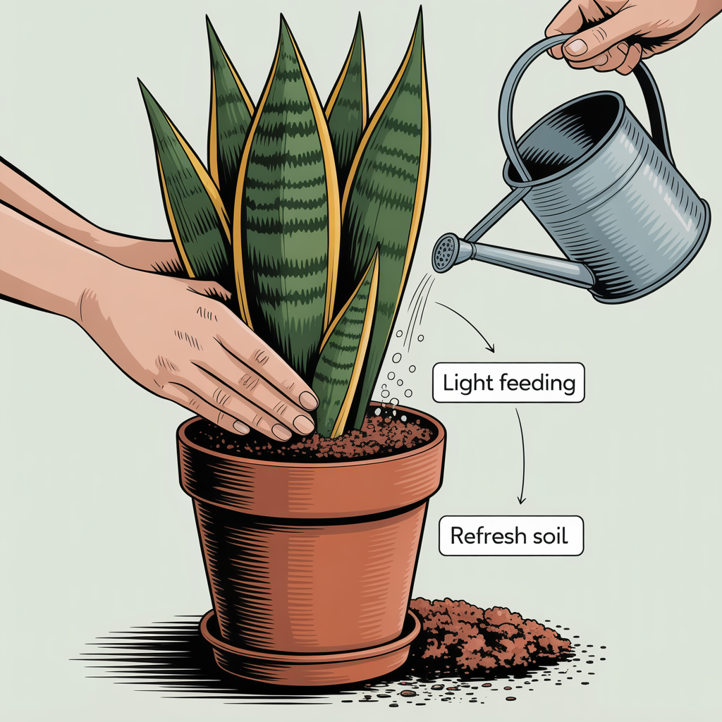 Refresh the soil periodically and use light feeding during active growth periods. Avoid excessive fertilizer, as this can create imbalance rather than improvement.