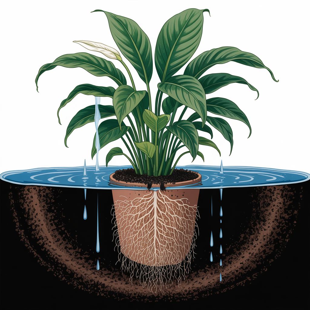 Peace lilies prefer evenly moist soil, but too much water can limit oxygen availability.